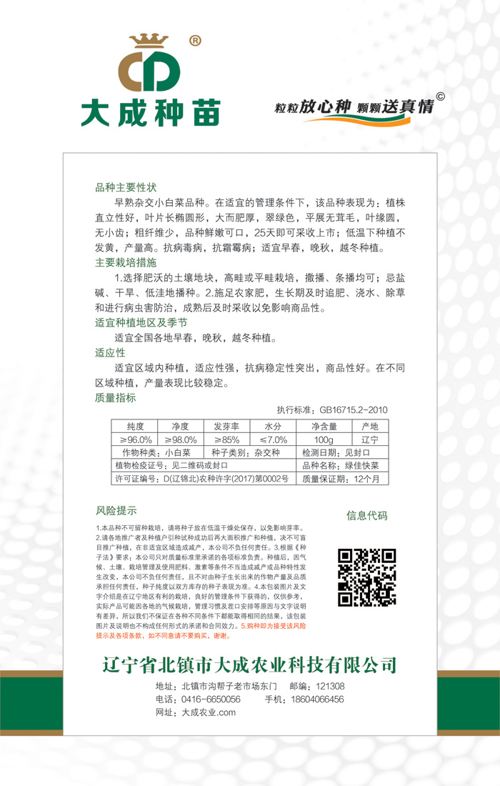 全國統(tǒng)一服務(wù)熱線:400-0416-369 手機(jī):18604066456 13332181151 網(wǎng)址:www.92095.com.cn 郵箱:lndczm@163.com dachengseed@163.com