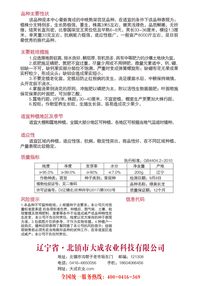 全國統(tǒng)一服務(wù)熱線:400-0416-369 手機(jī):18604066456 13332181151 網(wǎng)址:www.92095.com.cn 郵箱:lndczm@163.com dachengseed@163.com