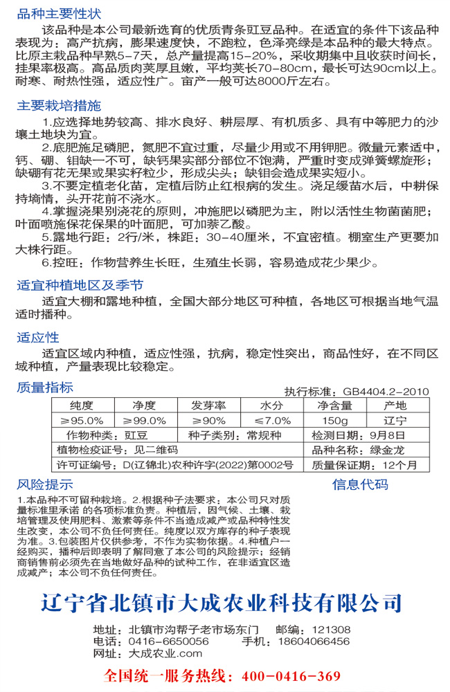 全國統一服務熱線:400-0416-369 手機:18604066456 13332181151 網址:www.92095.com.cn 郵箱:lndczm@163.com dachengseed@163.com