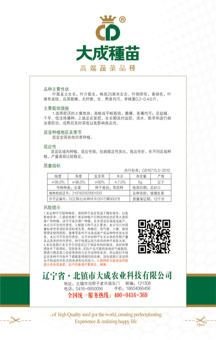 全國統(tǒng)一服務(wù)熱線:400-0416-369 手機(jī):18604066456 13332181151 網(wǎng)址:www.92095.com.cn 郵箱:lndczm@163.com dachengseed@163.com
